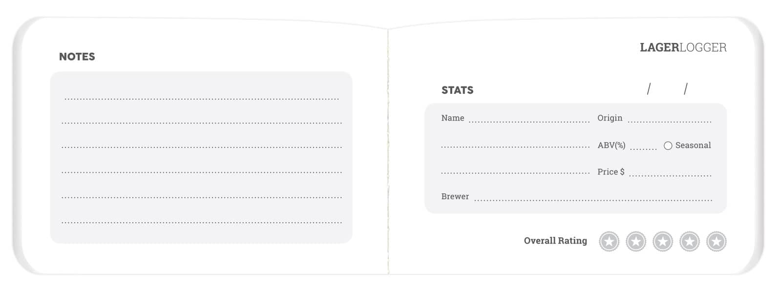 Flexible, wraparound paper covers in ClassicFlex Natural. Includes 1-color foil imprint and optional stock LagerLogger imprint along bottom of covers. 100 sheets of stock beer-scoring filler. Features rounded corners. A flat elastic privacy closure may be added as an upgrade. Perfect-bound spine. Made in the USA. Complies with FSC. 5″ W x 3.5″ H x 0.75″ D