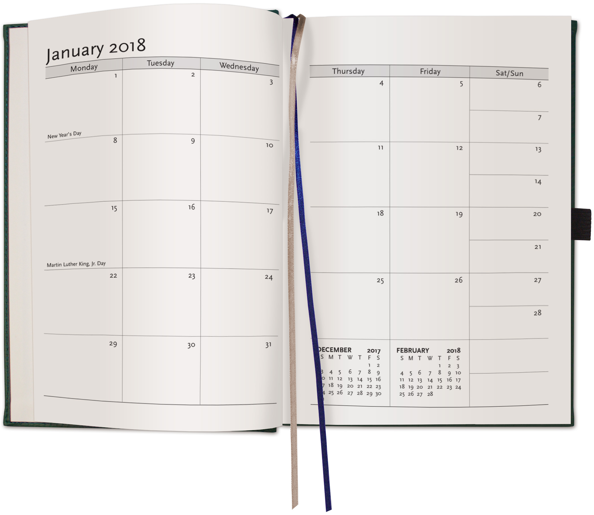 This 7″ x 9.5″ Pedova Planner features smooth, padded, faux-leather covers with thread-sewn book binding and a 12-month, digitally-printed calendar at front (13 sheets). Also contains 125 sheets of lined filler, a black elastic pen loop, and blue and silver satin ribbon bookmarks. Includes a blind deboss imprint up to 16 square inches. Imported book, decorated in the USA. Not available for SureShip. 7″ W x 9.5″ H